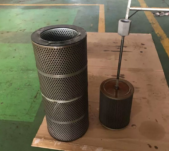 更換液壓油進(jìn)回油濾芯,首先檢查濾芯表面是否有異物,根據(jù)異物材質(zhì)判斷液壓系統(tǒng)中是否存在隱性故障。如:有棉絮類物質(zhì),液壓系統(tǒng)中有可能存在碎布之類物品;液壓油濾芯附著有鐵屑,那可以初步判斷主機(jī)液壓油管有拉傷;液壓油濾芯表面附著銅屑或銅塊,那我們可以斷定液壓泵內(nèi)部存在故障。如未發(fā)現(xiàn)有異物,但液壓油回油濾芯變黑,并且液壓油顏色變深,那說(shuō)明動(dòng)力單元內(nèi)的液壓油需要更換,并且液壓油濾芯需更換。