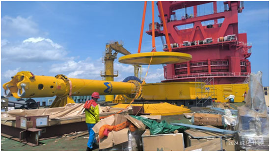 2024年7月,經(jīng)歷漫長(zhǎng)的制作周期,現(xiàn)存最大打擊能量液壓打樁錘MHU4400S制作完成;這也是目前全球唯一一套配備8m直徑單片式替打大樁帽的液壓大樁錘。