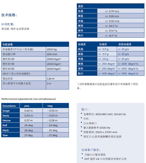 對于當(dāng)今的模擬市場,Van Halteren Technologies 提供的電動 3DOF 和 6DOF 運(yùn)動平臺有:cMotion-16500、cMotion-33000、eMotion-1500、eMotion-2700、eMotion-6000、eMotion-9500 和 eMotion-14000。VHT 的 3DOF 運(yùn)動平臺解決方案 cMotion 專為滿足客艙乘務(wù)員教練市場的最新標(biāo)準(zhǔn)而設(shè)計。